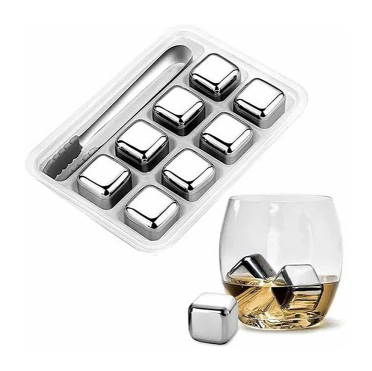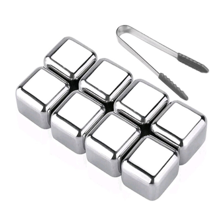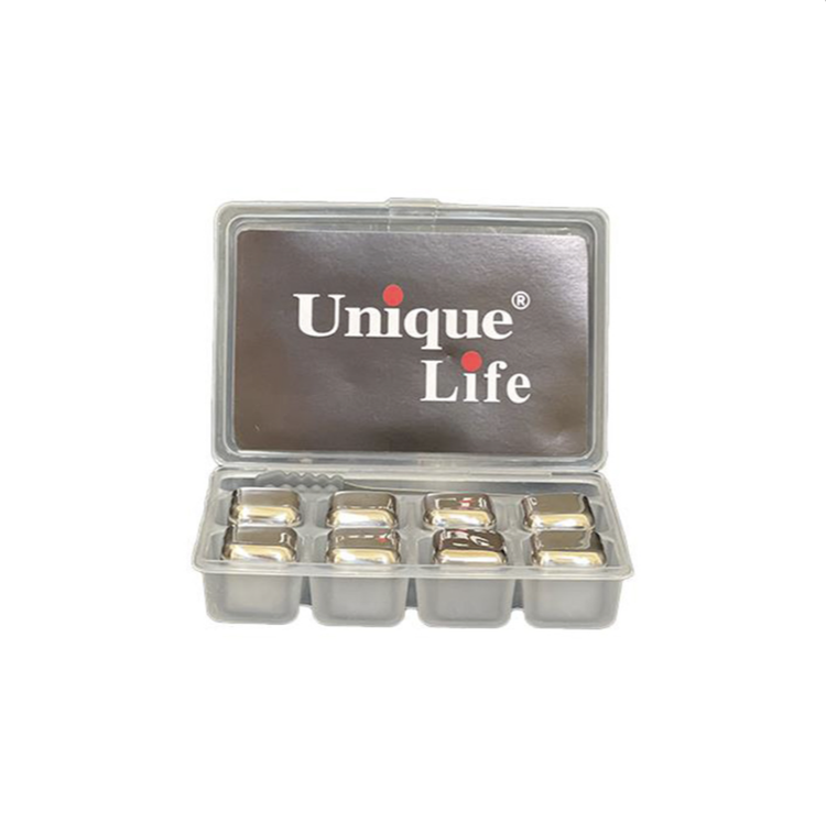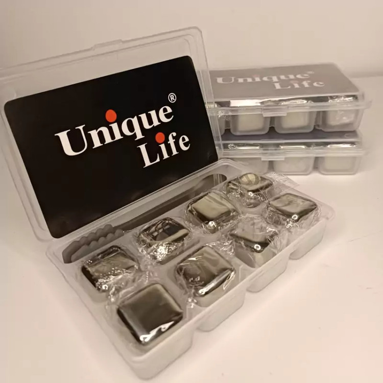 یخ استیل 8عددی مکعبی برند unique life به همراه انبر و جعبه نگهدارنده