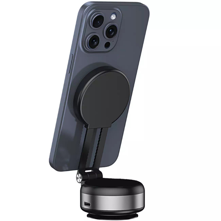 عملکرد جذب خلاء الکتریکی این قابلیت را دارد تا به طور خودکار شکاف ها و کاهش فشار را تشخیص دهد و مجدداً مکانیزم مکش جهت اعمال خلاء را فعال کند تا نگهدارنده تلفن همراه را در محل اتصال خود محکم تر کند. بدون نیاز به چسب یا پیچ، تنها با فشار دادن پایه هولدر روی سطح و کشیدن اهرم قفلکن، مکش قوی ایجاد شده و بهطور محکم میچسبد.