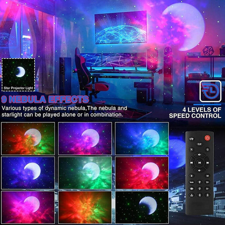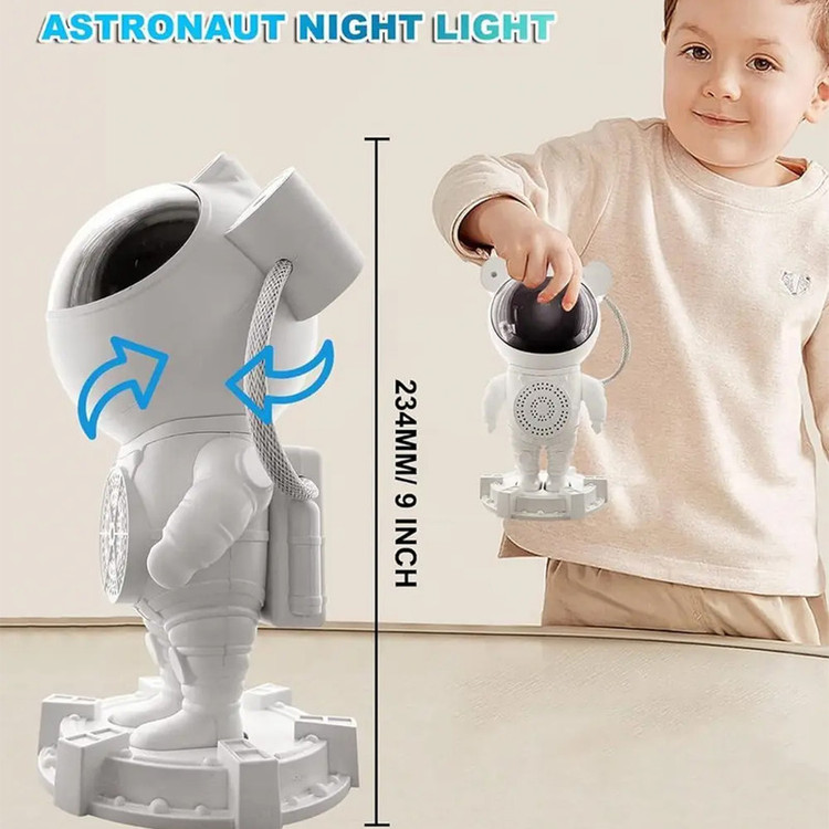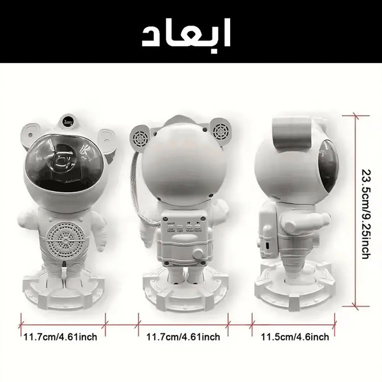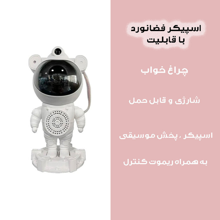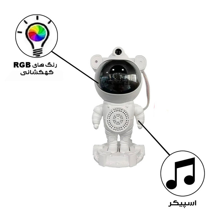 چراغ خواب کهکشانی طرح فضانورد اسپیکر دار با پروژکتور نور کهکشانی فضایی مسحورکننده ایجاد کنید! سحابی را در هر جایی نشان دهید و از یک جلوه سحابی ستاره ای جالب با رنگ ها، جهت ها و روشنایی قابل تنظیم لذت ببرید. ایده آل برای اتاق بازی و گردهمایی با دوستان، خانواده یا همکاران است . این پروژکتور نور ستاره دارای طراحی منحصر به فرد فضانوردی است که می تواند سحابی را در هر جایی نشان دهد. سر و بدنه به صورت مغناطیسی به هم متصل شده اند و سر ان را می توان 360 چرخاند که به شما امکان می دهد جلوه های نوری مختلفی ایجاد کنید. 4 افکت مختلف از سحابی های متحرک و ستاره های درخشان را روی سقف یا دیوار طراحی کنید و فضایی جالب و غوطه ور را برای اتاق شما ایجاد کنید. کودکان می توانند در حین بازی با این پروژکتور نور ستاره، در مورد کیهان بیاموزند. با یک کنترل از راه دور، آنها به راحتی می توانند رنگ، جهت و روشنایی نورها را تنظیم کنند و آن را به ابزاری سرگرم کننده و آموزشی برای تحریک کنجکاوی و خلاقیت تبدیل کنند. این پروژکتور نور ستاره ای با توانایی خود در ایجاد یک تجربه کیهانی نفس گیر، برای تبدیل فضاهای نشیمن، اتاق خواب، سینمای خانگی و اتاق های بازی به پناهگاه های رمانتیک عالی است و برای استفاده گسترده در هر فضایی ایده آل است. این پروژکتور نور ستاره راه عالی برای افزودن جذابیت به هر فضایی است. این یک نور دکوراسیون داخلی خیره کننده برای یک شب رمانتیک در یا فضای دنج ایجاد می کند. این تجربه منحصر به فرد و فراموش نشدنی را با دوستان، خانواده یا همکاران به عنوان هدایایی فوق العاده به اشتراک بگذارید.