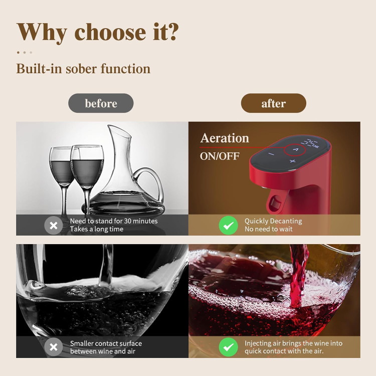 قابلیت Aerator یا هوادهی باعث میشود عطر و طعم نوشیدنی بهتر آزاد شود و خروجی تمیز و بدون ریزش ارائه دهد. طراحی آن بسیار شیک و لوکس است و در رنگهای مشکی، قرمز، طلایی و سفید تولید میشود.