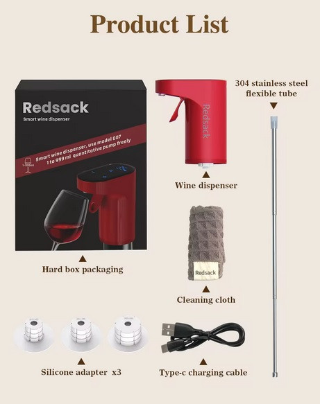 دیسپنسر دیجیتالی Redsack یک پمپ نوشیدنی کاملاً هوشمند است که با قابلیت تنظیم حجم خروجی، استفاده دقیق و حرفهای از نوشیدنیها را فراهم میکند. این دستگاه با یک صفحه دیجیتال کوچک و قابلیت شارژ مجدد، بسیار کاربردی و مناسب مهمانیها، کافیبارها و استفاده روزمره است.