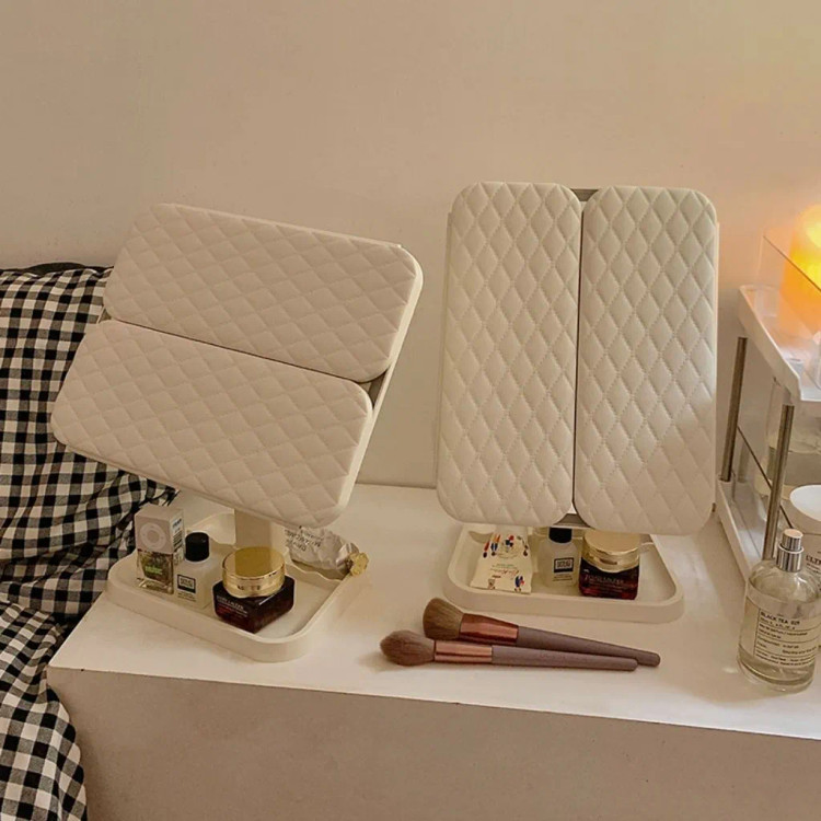 همچنین طراحی تاشوی سهلتی آینه این امکان را به شما میدهد که هر زمان به آن نیاز ندارید، بهراحتی آن را جمع کرده و به شکل یک کیف یا قاب زیبا نگهداری کنید.