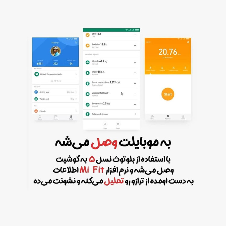 *گزارش تجزیه و تحلیل ۲۵ شاخص ترکیب بدن: وزن بدن، ضربان قلب، BMI، امتیاز بدن، محتوای آب بدن، هیدراتاسیون بدن، درصد چربی بدن، توده چربی، توده پروتئین، میزان پروتئین، توده عضلانی، میزان عضله، توده معدنی استخوان ، میزان مواد معدنی استخوان، میزان چربی احشایی، میزان متابولیسم پایه، توده بدن بدون چربی، نوع بدن، نسبت تخمینی دور کمر به باسن، سن بدن، توده عضلانی اسکلتی، کنترل وزن، کنترل عضله، کنترل چربی، وزن استاندارد. برای مشاهده گزارش کامل ترکیب بدن به اپلیکیشن Mi Home/Xiaomi Home متصل شوید.
