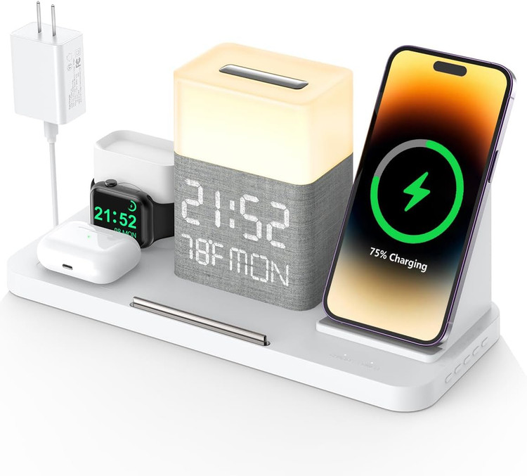 【روشنایی قابل تنظیم لمسی】وایرلس شارژ دارای 3 نوع نور قابل تنظیم است: نور گرم، نور طبیعی و نور سرد. روشنایی زمان و دمای نمایشگر دیجیتال را نیز می توان از طریق کنترل لمسی تنظیم کرد. روشنایی قابل تنظیم 0٪ - 100٪ است، می توانید آن را به راحت ترین روشنایی تنظیم کنید، بر خواب تأثیر نمی گذارد.